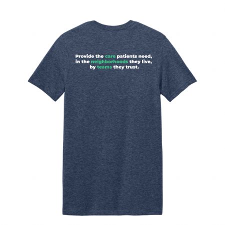 Full-Color front and back DTF transfer imprint on this 4.5-ounce, 100% ring spun Non-topstitched 5/8" rib collar Taped neck and shoulders Modern classic fit, seamless body Double-needle sleeves and hem Recycled, high-performing black tear-away label